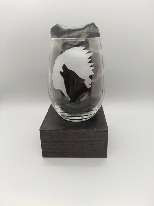 Native Wolf Etched Stemless Wine Glass 20.5oz