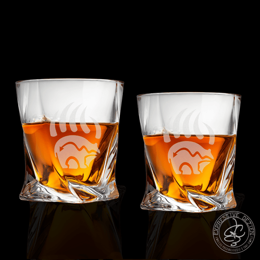 Etched Bear Claw Whiskey Decanter and Glass Set