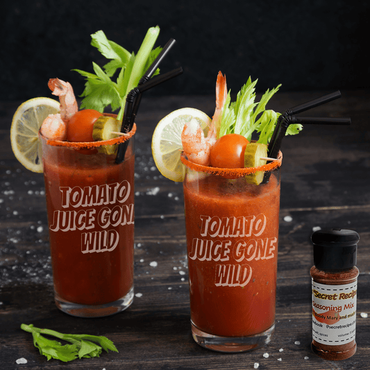 Etched Engraved 16oz Pint Glass - 'Tomato Juice Gone Wild' Bloody Mary Design