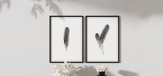 Feathers Set of 2 One single Feather and one with two Feathers Art
