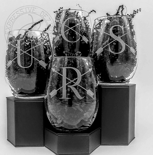 Crossed Arrow Custom Monogram Stemless Wine Glass - 20.5oz