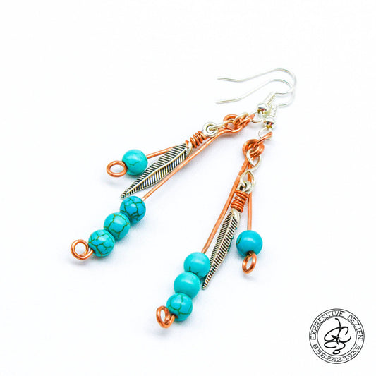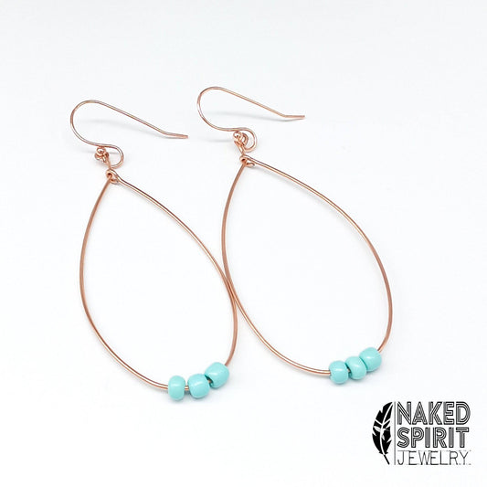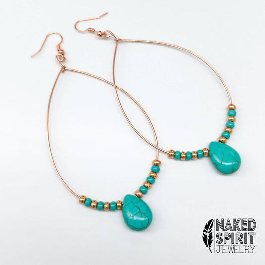 Turquoise Teardrop Beaded Copper Hoop Earrings