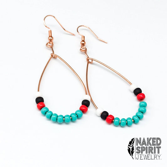 Medicine Wheel Teardrop Beaded Copper Hoop Earrings