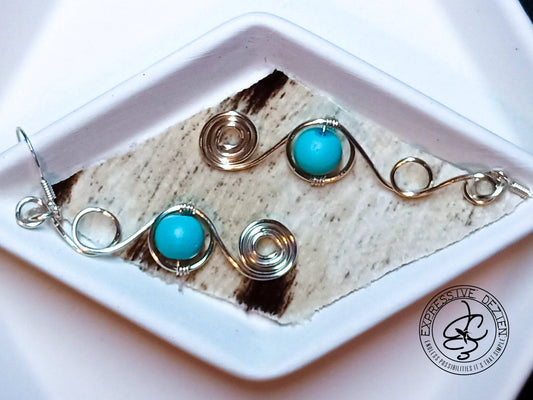 Silver Curly Swirly Dangle Earrings with Turquoise