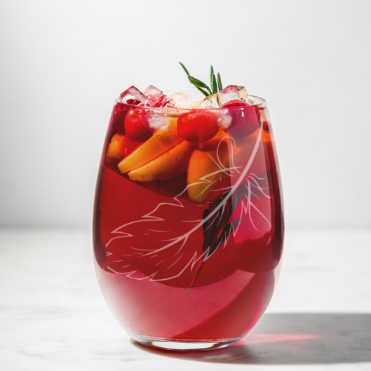Two Feathers Sandblast Etched Stemless Wine Glass, 20.5oz - Unique Handmade Glassware