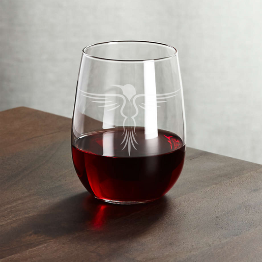 Etched Tribal Hummingbird Stemless Wine Glass – 20.5oz Handmade Sandblasted Glassware