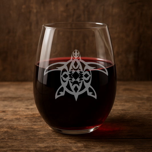 Tribal Turtle Etched Stemless Wine Glass – 20.5oz