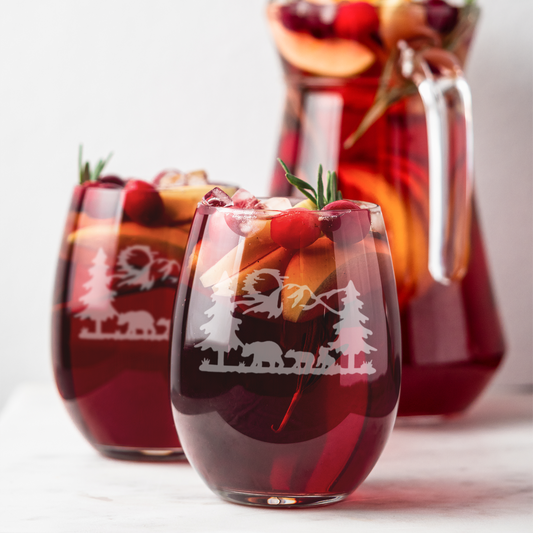 Bear Family Etched Stemless Wine Glass – 20.5oz