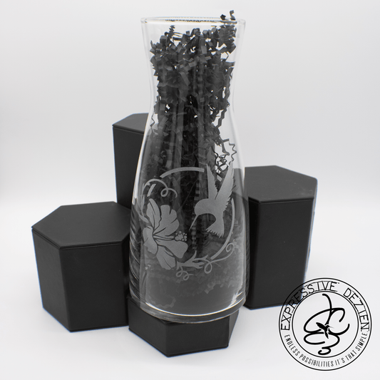 Etched Hummingbird Wine Carafe & Stemless Glass Set (5-Piece)