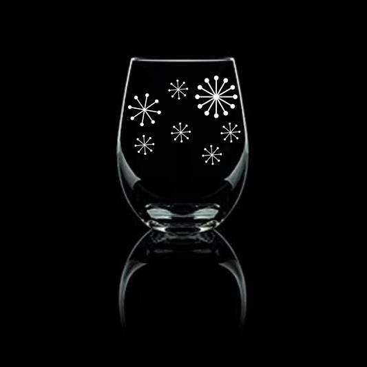 Retro Winter Etched Stemless Wine Glass 20.5oz | Snowflake Wine Glasses