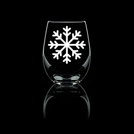 Blizzard Delight Etched Stemless Wine Glass 20.5oz | Snowflake Wine Glasses