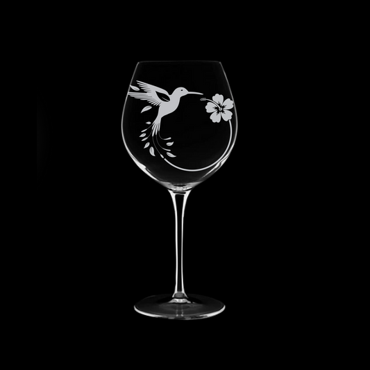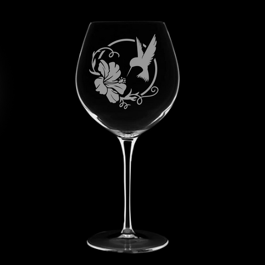 Hand-Etched Hummingbird & Hibiscus Wine Glass - Luigi Bormioli Vinoteque